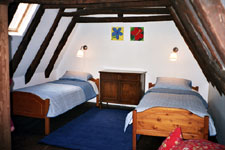 The attic room has two single beds on one side, with a play area opposite. There is a double sofa bed here if required. |