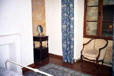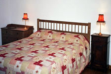 The first bedroom has a queen size bed, and views of both the ancient church and the street. This is a large room which easily fits a fold out single bed if required. |