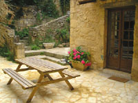 The main living area of the house has French doors and a large window which looks out to the courtyard. Comfortable seats, a great dining area, and a TV/DVD/CD are there for you to enjoy and relax. |