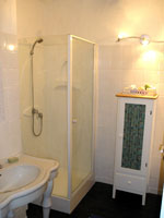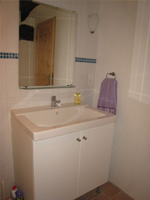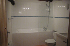 The downstairs bathroom has a full size bath, basin, shower over the bath, and WC.