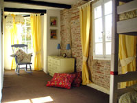 The third bedroom is a sunny room with single bunk beds (which can be put as two singles) and easily fits a folding double bed if required. This room has a view of the garden, and the ancient mill. |